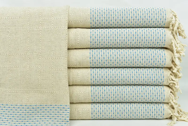 Türkisches Geschirrtuch aus gewebter Baumwolle, Türkis, Beige, 20 x 40 Zoll