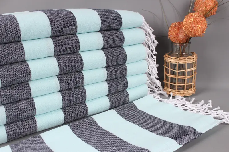 Handtücher aus türkischer Baumwolle, gewebt aus erstklassigem türkischen Bio-Baumwollgarn, das maximale Saugfähigkeit und Haltbarkeit gewährleistet. Diese Handtücher zeichnen sich durch ihre Abmessungen von 18 x 40 Zoll (45 x 100 Zentimeter) und ein Gewicht von 80 Gramm aus und weisen eine Handwebtoleranz von bis zu 2 Zoll (5 Zentimeter) auf.