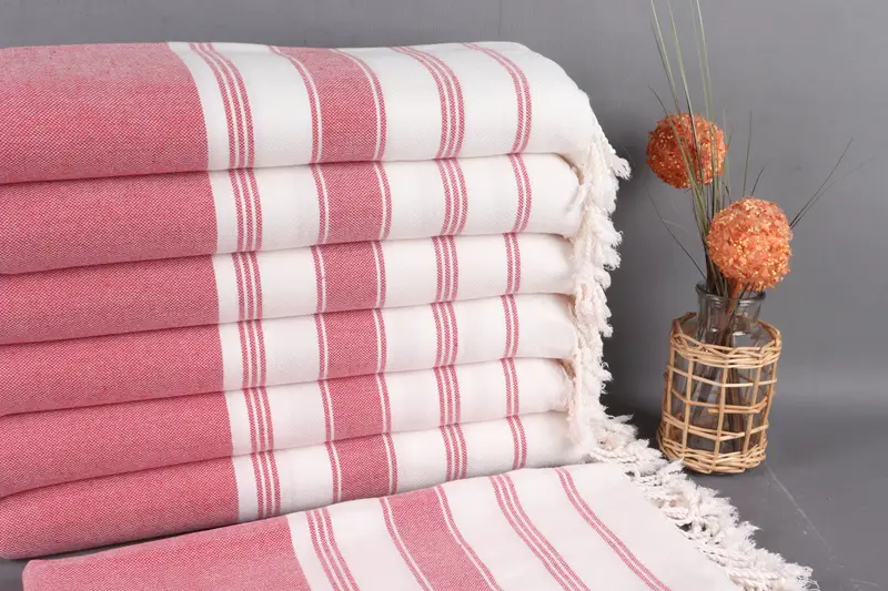 Das türkische Badetuch, ein Produkt aus Bio-Baumwollgarn, sorgt für hervorragende Saugfähigkeit und Haltbarkeit. Das Handtuch misst 100 x 190 Zentimeter (40 x 75 Zoll) mit einer Toleranz von 5 cm (2 Zoll) und wiegt 380 Gramm. Die Handwebtechnik ermöglicht leichte Abweichungen in den Abmessungen.