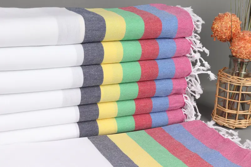 Das türkische Strandtuch zeichnet sich durch sein Garn aus 100 % Bio-Baumwolle aus und sorgt für eine hohe Saugfähigkeit und Haltbarkeit. Das Ergebnis ist ein vielseitiges Produkt: Das Handtuch misst 100 x 180 Zentimeter (40 x 71 Zoll) und wiegt etwa 280 Gramm. Handwebtechniken erlauben eine Größentoleranz von 1-2,5 Zentimetern.