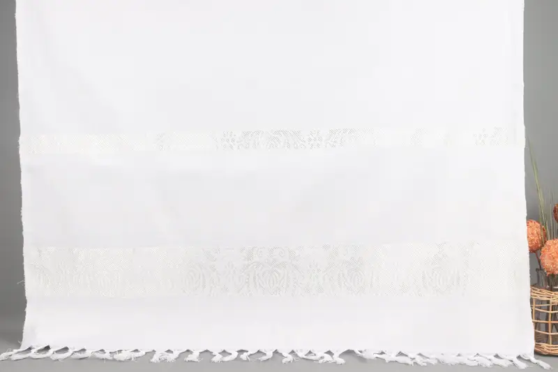 Das Badetuch ist aus Bio-Baumwollgarn gefertigt und gewährleistet Haltbarkeit und Atmungsaktivität. Das Handtuch zeichnet sich durch seine Maße von 40 x 66 Zoll oder 100 x 166 Zentimetern aus und wiegt 295 Gramm. Aufgrund handgewebter Techniken kann es zu einer Größentoleranz von bis zu 2,5 cm kommen.