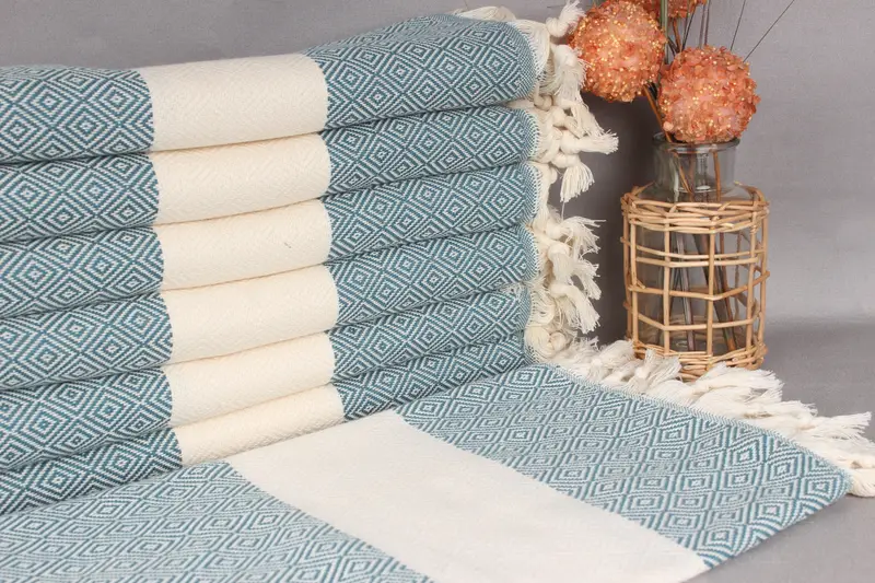 Webtechniken ermöglichen die beidseitige Verwendung des Handtuchs und es kann mehreren Zwecken dienen, darunter Küche, Bad, Baby, Strand, Reisen, Yoga und dekorative Zwecke. Durch den Handwebprozess entsteh...