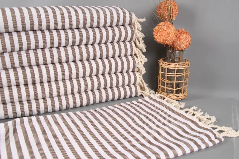 Das türkische Handtuch ist aus Bio-Baumwollgarn gewebt, was eine außergewöhnliche Saugfähigkeit und Haltbarkeit gewährleistet. Die Handtücher zeichnen sich durch ein vielseitiges Design aus und haben die Maße 18 x 40 Zoll bzw. 45 x 100 Zentimeter bei einem Gewicht von 100 Gramm. Der Handwebprozess ermöglicht eine Toleranz von bis zu 5 Zentimetern.