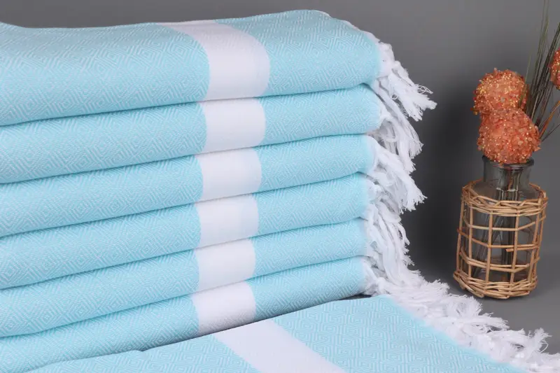 Bio-Baumwollgarn zeichnet diese türkischen Strandtücher aus und sorgt für hohe Saugfähigkeit und weiche Textur. Mit einer Abmessung von 100 x 180 cm (40 x 71 Zoll) und einer Toleranz von ± 2,5 cm wiegen diese Handtücher etwa 360 Gramm. Mit Präzision handgewebt, bieten sie vielseitige Einsatzmöglichkeiten, von der Küche bis zum Strand.