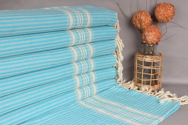 Türkisches Handtuch aus türkisfarbener Baumwolle, 18 x 40 Zoll, gestreiftes Geschirrtuch