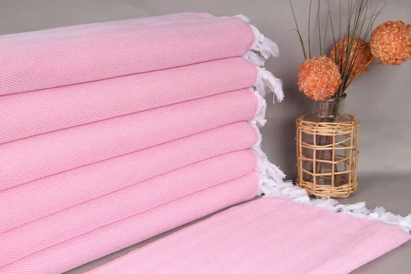 Handgewebtes Geschirrtuch, individuell bestickt, rosa Fischgrätenmuster, 18 x 34 Zoll