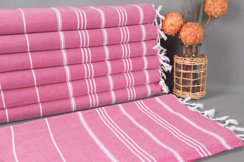 Monogrammiertes Geschirrtuch, Fuchsia gestreift, 24 x 40 Zoll, Bio-Baumwolle