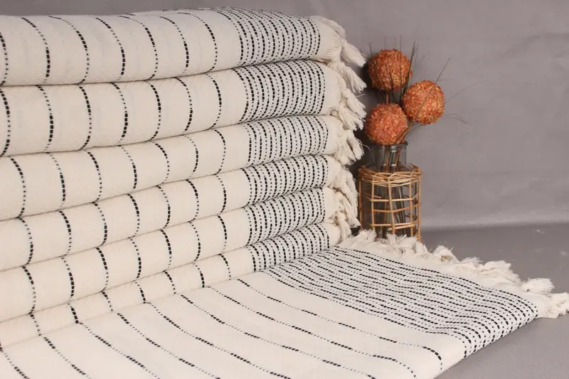 Personalisierte türkische Decke aus marineblauer Baumwolle, 91 x 97 Zoll