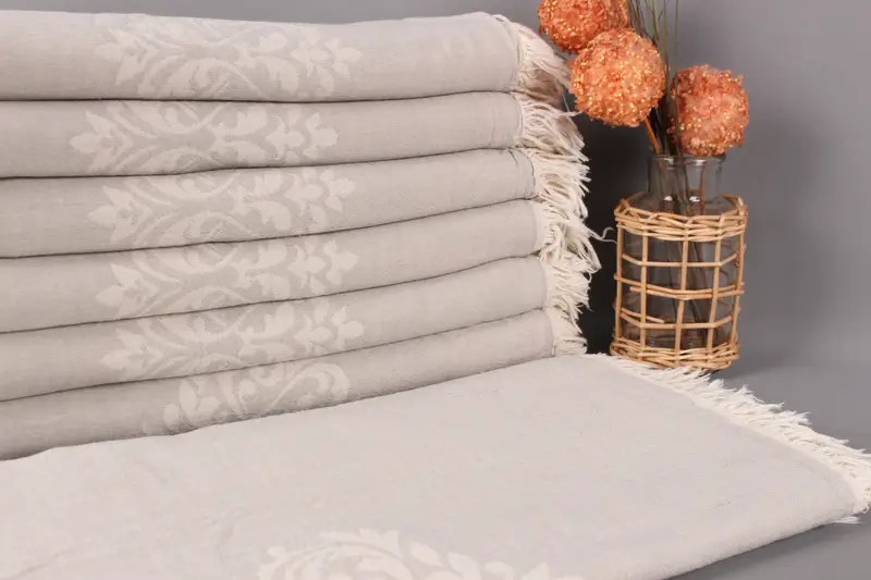 Handgewebte hellgraue Barockdecke, Bio-Baumwolle, 60 x 71 Zoll