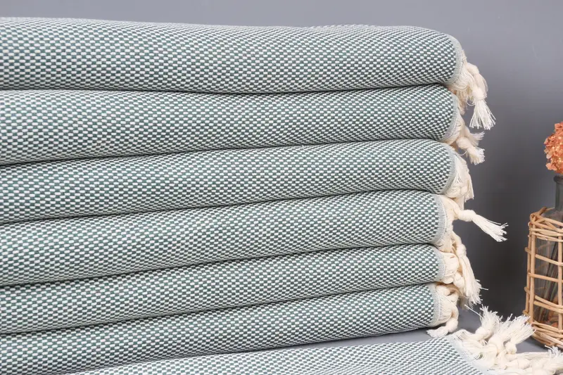 Türkisches Handtuch aus Bio-Baumwolle, gepunktet, dunkelgrün, 45,7 x 101,6 cm
