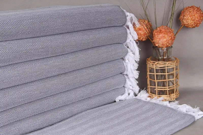Maßgeschneidertes Küchenhandtuch mit Fischgrätenmuster, dunkelgrau, 45,7 x 86,4 cm, Bio-Baumwolle