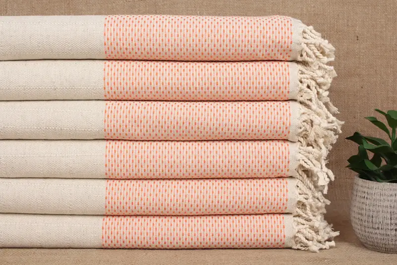 Dieses Handtuch zeichnet sich durch seine Zusammensetzung aus reiner Bio-Baumwolle aus und sorgt für außergewöhnliche Saugfähigkeit und schnelles Trocknen. Daraus ergibt sich ein Gewicht von ca. 480 Gramm, das 40 x 71 Zoll (100 x 180 cm) große Handtuch hat eine Handwebtoleranz von ± 2 Zoll oder 5 cm.