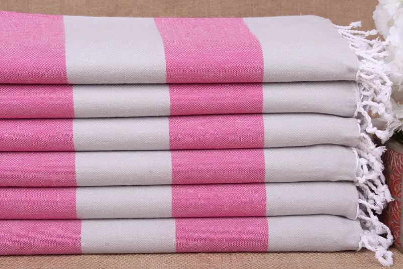 Das Produkt besteht aus reiner Bio-Baumwolle und sorgt so für eine hohe Saugfähigkeit und schnelle Trocknung. Die Abmessungen des Handtuchs betragen 40 x 71 Zoll oder 100 x 180 cm, mit einer zulässigen Webtoleranz von ± 2 Zoll oder 5 cm. Das etwa 290 Gramm schwere Handtuch zeichnet sich durch sein Handwebverfahren aus, das eine individuelle Gestaltung mit gestickten Monogrammen ermöglicht.