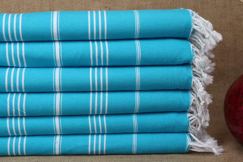 Strandtuch, personalisierbar, türkische Baumwolle, türkis gestreift, 40 x 71 Zoll