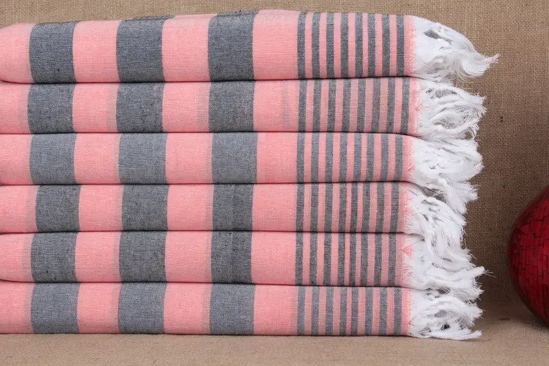 Türkisches Handtuch aus Bio-Baumwolle, Schwarz-Koralle, 36 x 67 Zoll