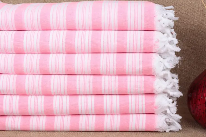 Strandtuch aus Bio-Baumwolle, leuchtend rosa gestreift, 101,6 x 180 cm