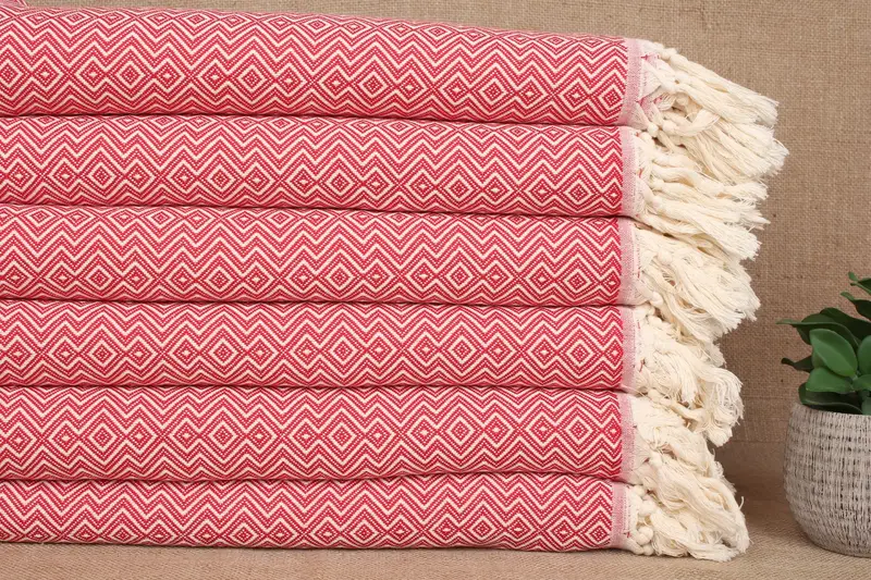 Strandtuch, personalisiertes türkisches Baumwollmonogramm, Rot, 38 x 71 Zoll