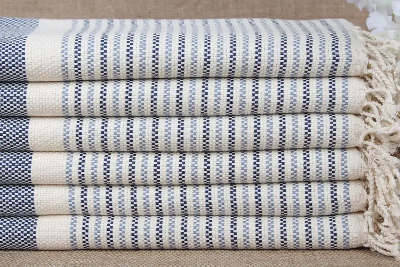 Türkisches Strandtuch, Marineblau-Grau, geometrisch, 101,6 x 180 cm