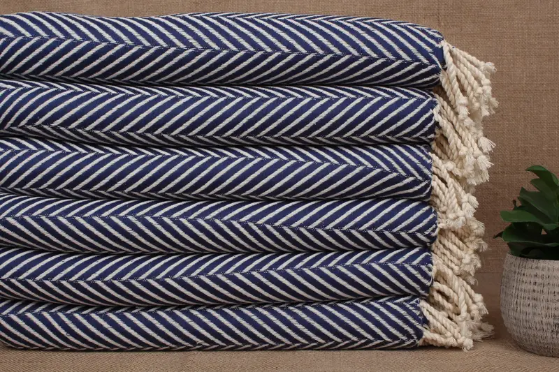 Personalisiertes marineblaues Chevron-Strandtuch aus Bio-Baumwolle, 40 x 69 Zoll