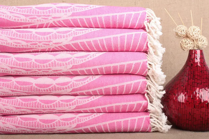 Die türkischen Badetücher bestehen aus reiner Bio-Baumwolle und sorgen für eine außergewöhnliche Saugfähigkeit und schnelles Trocknen. Jedes Handtuch misst 40 x 71 Zoll oder 100 x 180 Zentimeter und wiegt etwa 320 Gramm. Aufgrund der handwerklichen Beschaffenheit ergibt sich eine Webtoleranz von bis zu 2 Zoll bzw. 5 Zentimetern.