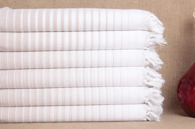 Hochzeitsgeschenk, Strandtuch aus Bio-Baumwolle, beige gestreift, 40 x 69 Zoll