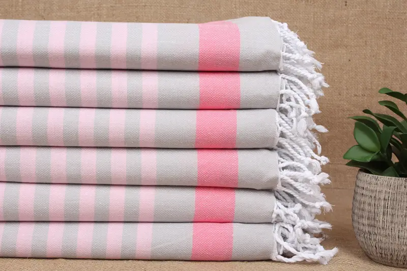 Personalisiertes türkisches Handtuch, Fuchsia-Rosa gestreift, Bio-Baumwolle, 40 x 71 Zoll