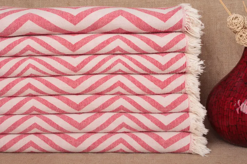 Personalisiertes türkisches Handtuch Zickzack, Beige, Bio-Baumwolle, 38 x 71 Zoll