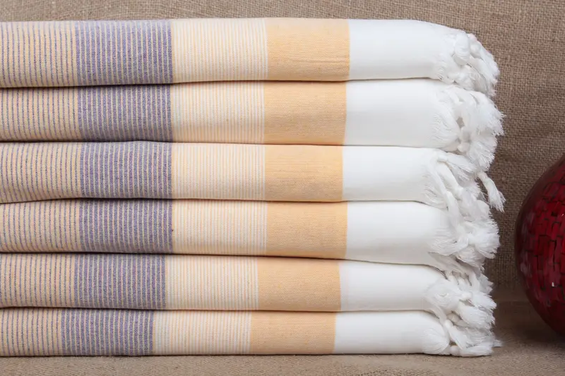 Türkische Handtücher zeichnen sich durch ihre Zusammensetzung aus reiner Bio-Baumwolle aus und bieten außergewöhnliche Saugfähigkeit und schnelle Trocknungseigenschaften. Diese Handtücher werden sorgfältig doppelseitig von Hand gestrickt, um ein hochwertiges, umweltfreundliches Produkt zu gewährleisten. Die inhärenten Eigenschaften des Materials führen zu einem leichten, vielseitigen Produkt, das für mehrere Verwendungszwecke geeignet ist.