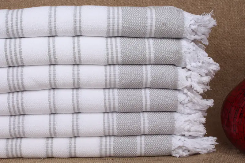 Besticktes Strandtuch mit grau-weißer Raute, Bio-Baumwolle, 40 x 71 Zoll