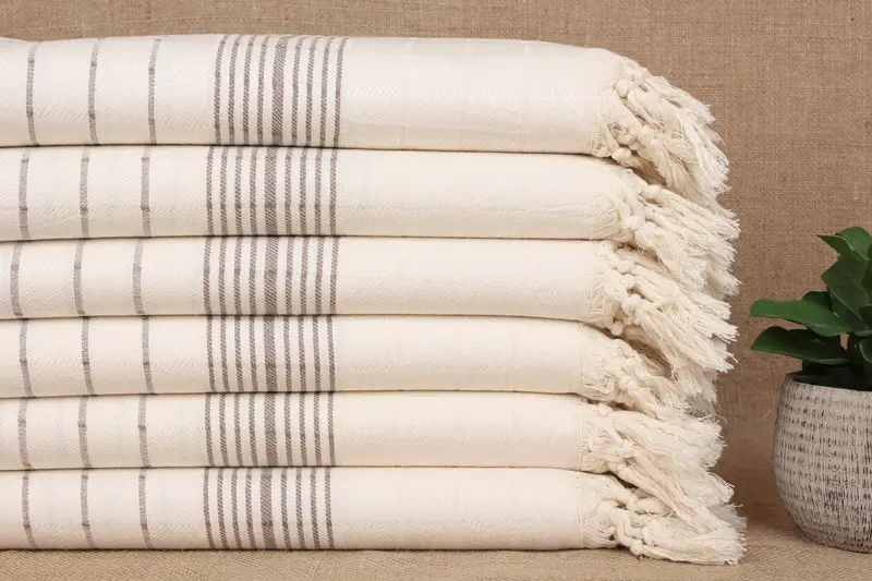 Handgefertigte türkische Handtücher zeichnen sich durch reine Bio-Baumwolle aus, die eine hohe Saugfähigkeit und schnelles Trocknen gewährleistet. Jedes Handtuch mit den Maßen 40 x 71 Zoll (100 x 180 cm) wiegt etwa 370 Gramm, mit einer Handwebtoleranz von ± 2" (5 cm). Personalisierte Handtücher sind mit gestickten Monogrammen erhältlich und können mit Monogrammbuchstaben, Farbe, Schriftart und Standort individuell angepasst werden.