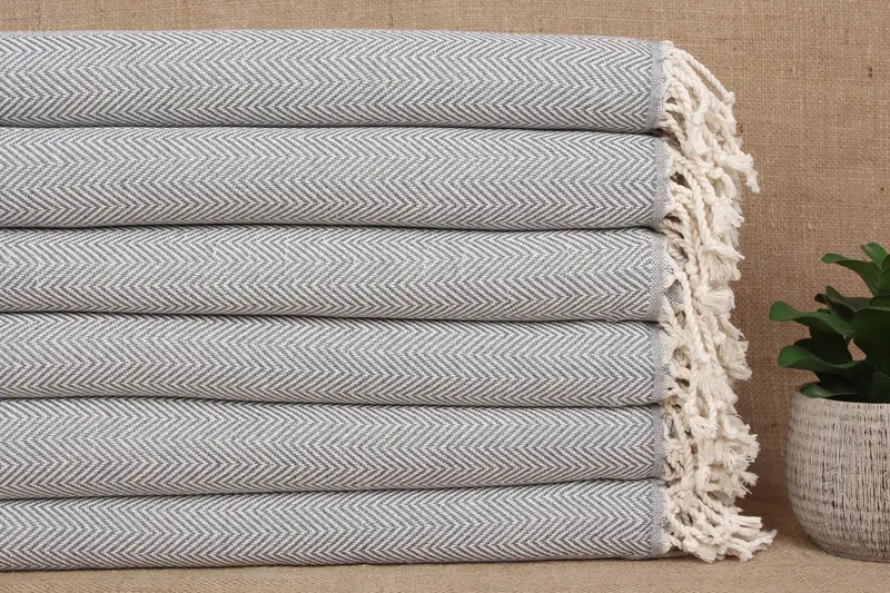 Reine Bio-Baumwolle zeichnet diese türkischen Handtücher aus und sorgt für eine hohe Saugfähigkeit und schnelles Trocknen. Das Ergebnis ist ein leichtes Handtuch, dessen Material zu 100 % aus türkischem Baumwollgarn besteht. Jedes Handtuch mit den Maßen 180 x 100 cm (71 x 40 Zoll) wiegt etwa 400 Gramm und kann aufgrund des Handwebprozesses geringfügige Größenabweichungen von ± 2 Zoll oder 5 cm aufweisen.