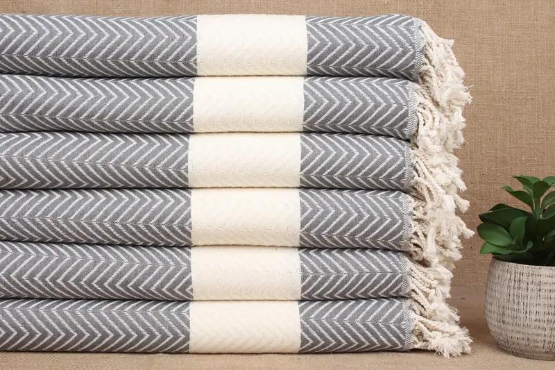 Türkisches Strandtuch, personalisierbar, dunkelgrau-weißes Chevron, 40 x 71 Zoll