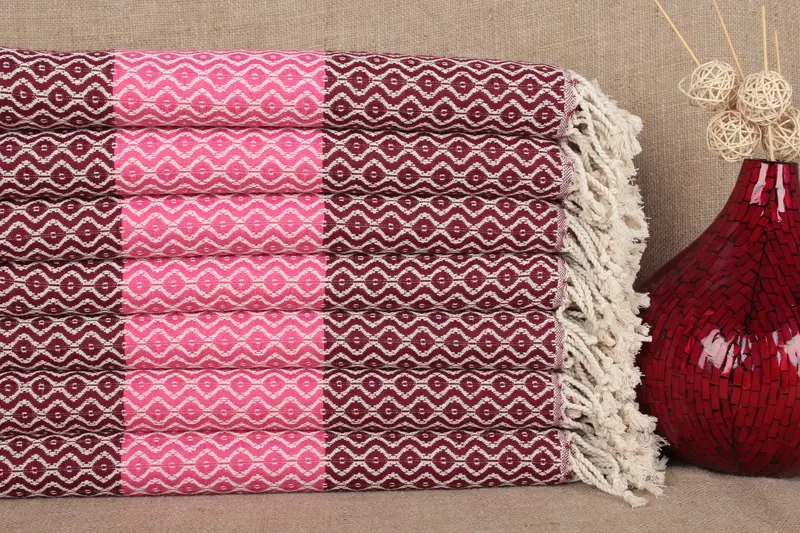 Bio-Baumwolle sorgt für hervorragende Saugfähigkeit und schnelle Trocknungseigenschaften des türkischen Strandtuchs, das sich durch seine doppelseitige, flachgewebte Konstruktion auszeichnet. Das Handtuch misst 40 x 67 Zoll (100 x 170 cm) mit einer Toleranz von ± 2 Zoll (5 cm) aufgrund des Handwebens und wiegt etwa 450 Gramm.
