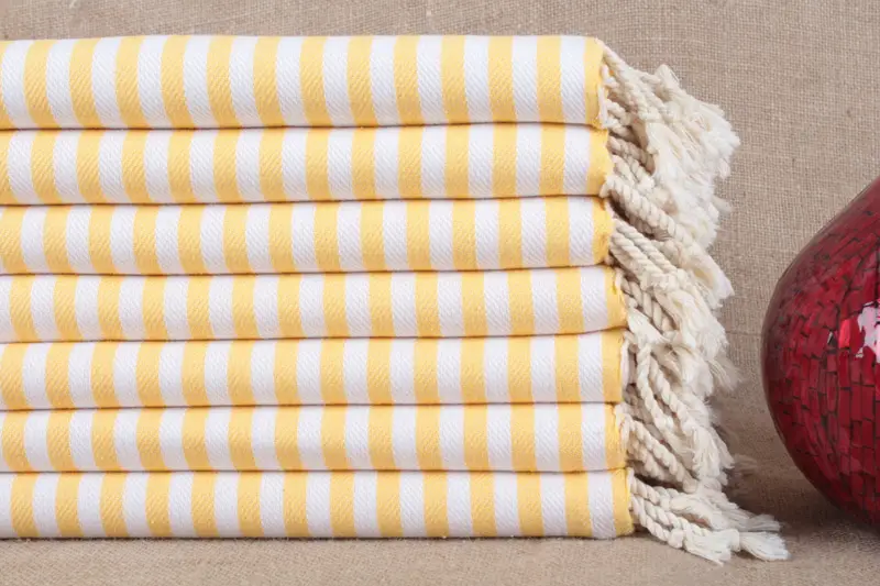 Diese Handtücher bestehen aus hochwertiger türkischer Baumwolle und sind sorgfältig doppelseitig gestrickt, was ihren umweltfreundlichen und langlebigen Charakter gewährleistet. Sie sind sehr saugfähig, gut waschbar und für den vielseitigen Bedarf im Haushalt geeignet. Bei einem Gewicht von ca. 290 Gramm sind die Handtücher in einer Standardgröße von 100 x 180 cm (40 x 71 Zoll) erhältlich, mit einer Toleranz von ± 5 cm (2 Zoll) aufgrund der Handwebung.