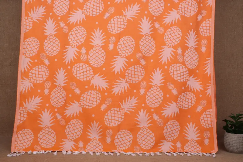Türkisches Strandtuch mit personalisiertem orangefarbenem Ananasmuster, 36 x 71 Zoll
