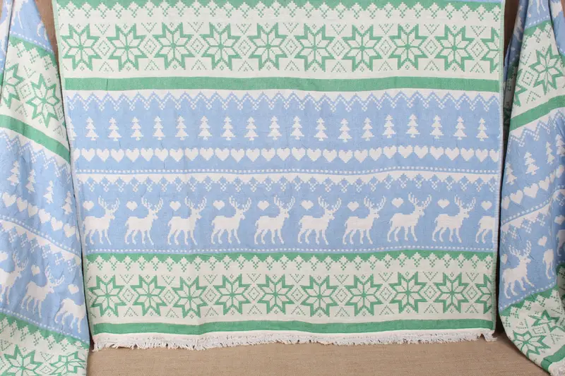 Personalisiertes grün-blaues Handtuch mit Hirschmuster, 38 x 75 Zoll