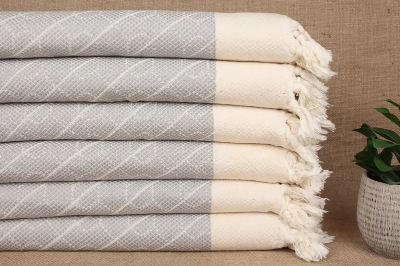 Kaffee-Geschirrtuch aus Bio-Baumwolle, hellgrau, geometrisch, 45,7 x 91,4 cm