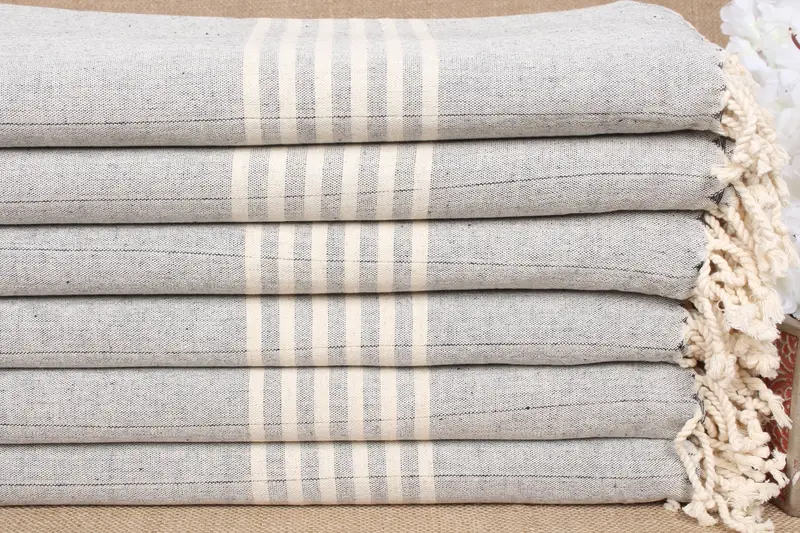 Benutzerdefiniertes Monogramm-Strandtuch aus marineblau gestreiftem Leinen, 40 x 71 Zoll