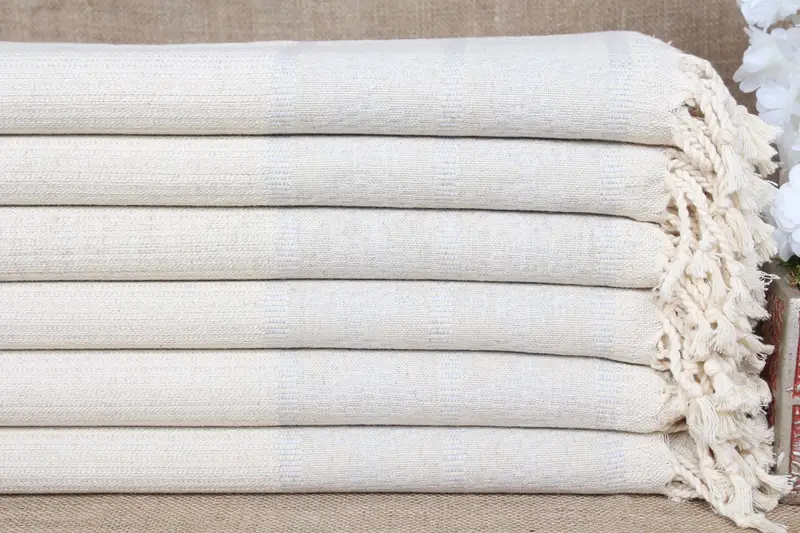 Türkisches Handtuch, hellgraues Kelim-Design, Leinen, 91,4 x 180,9 cm