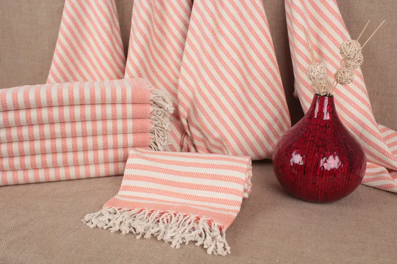 Türkisches Strandtuch aus Bio-Baumwolle, beige Chevron, 40 x 71 Zoll