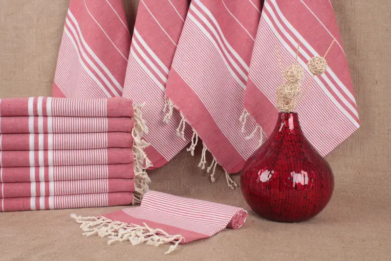Die Handtücher zeichnen sich durch eine saugfähige Beschaffenheit aus und bestehen aus reiner Bio-Baumwolle, die eine schnelle Trocknung und eine hohe Saugfähigkeit gewährleistet. Die Handtücher haben eine Größe von 24 x 40 Zoll bzw. 60 x 100 Zentimeter und wiegen etwa 120 Gramm. Aufgrund der Handwebtechnik gibt es eine Toleranz von ±2 Zoll oder 5 Zentimetern.