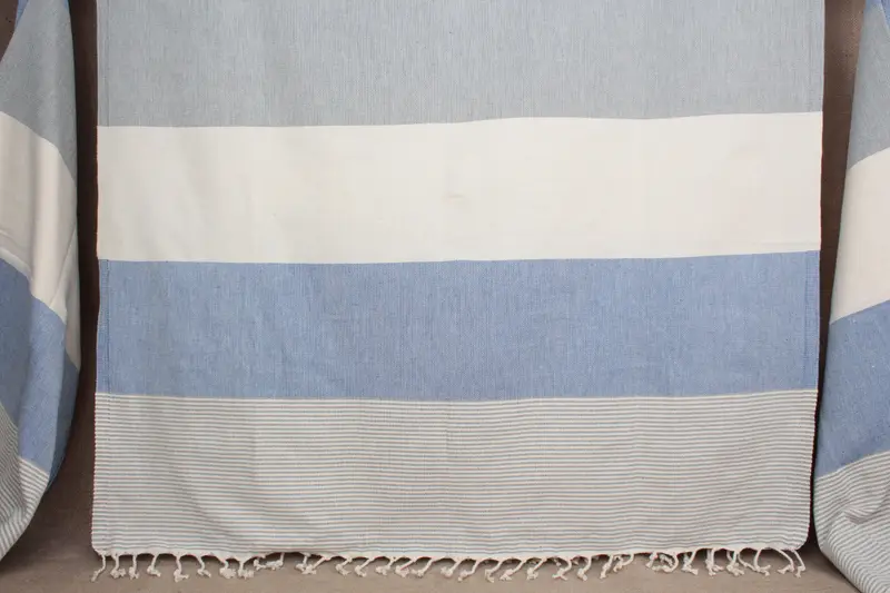 Bio-Peshtemal-Handtuch in Dunkelgrau-Sax-Blau, gestreift, 40 x 71 Zoll