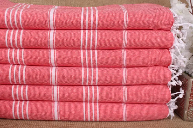 Hellrotes Baumwollhandtuch gestreift, personalisiert, 40 x 71 Zoll