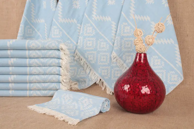Türkische Handtücher zeichnen sich durch eine Faserzusammensetzung aus 100 % türkischer Baumwolle aus, die eine hohe Saugfähigkeit und schnelle Trocknungszeiten gewährleistet. Diese Handtücher mit einem Gewicht von etwa 130 Gramm haben die Maße 24 x 40 Zoll oder 60 x 100 Zentimeter, mit einer Webtoleranz von ±2 Zoll oder 5 Zentimeter. Es stehen individuelle Stickoptionen zur Verfügung, die eine Personalisierung mit Monogrammen oder Logos ermöglichen. Vorgewaschene Handtücher werden gebrauchsfertig geliefert. Für die Pflege wird eine Waschtemper...