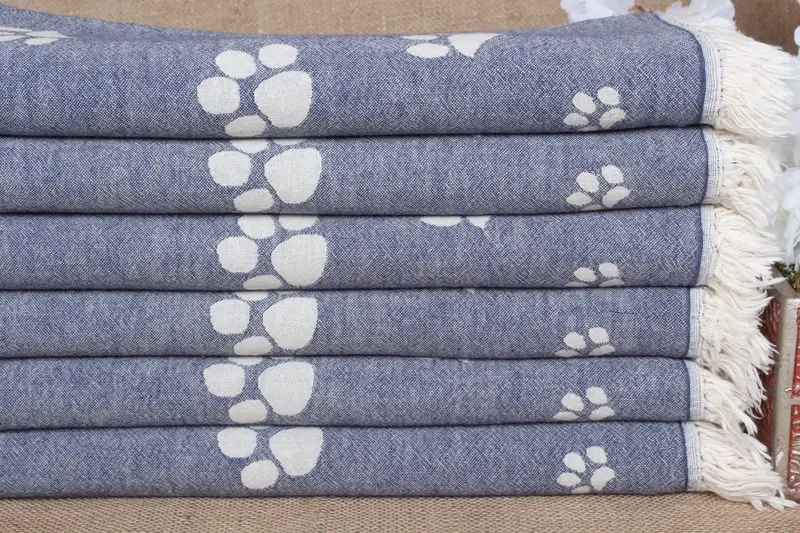 Türkische Handtücher, Strand-Marineblau, personalisiertes Pfoten-Design, 91,4 x 180,9 cm