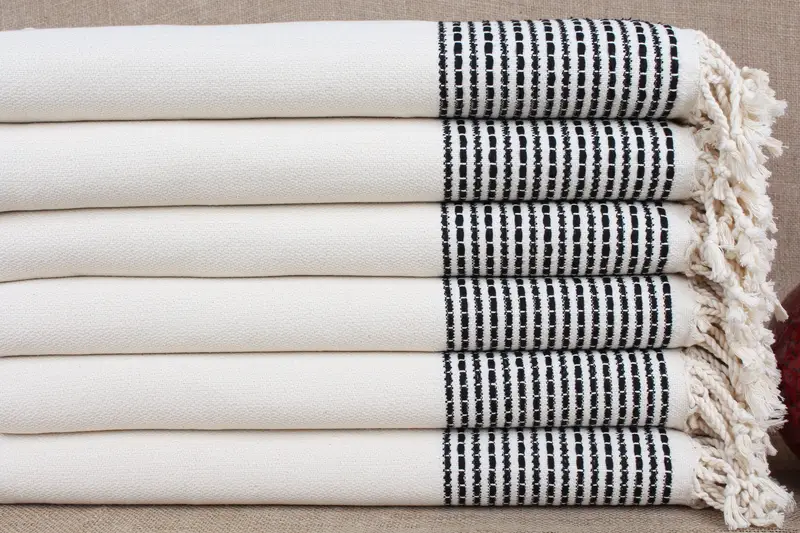 Personalisiertes Strandtuch aus türkischer Baumwolle mit schwarzen Streifen, 36 x 69 Zoll