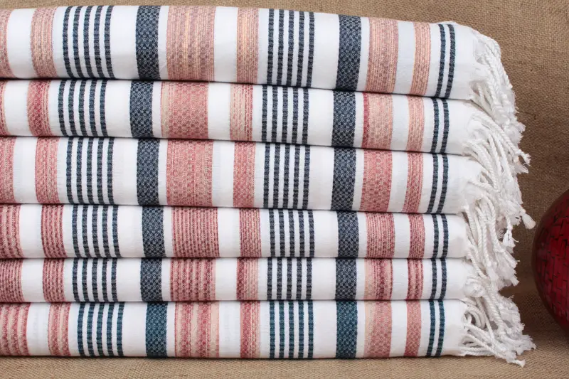 Handtücher aus Bio-Baumwolle, Marineblau-Ziegelstein-Peshtemal, 38 x 71 Zoll