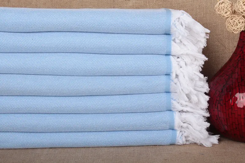 Türkisches Handtuch aus Bio-Baumwolle, Fischgrätmuster, Beige, 40 x 67 Zoll