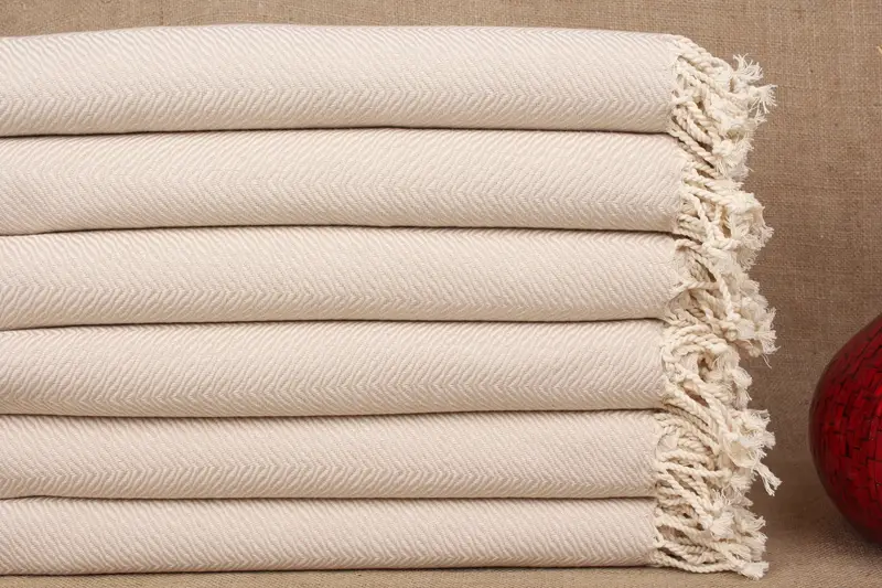 Maßgeschneidertes Strandtuch aus türkischer Baumwolle, hellbeige Chevron, 40 x 71 Zoll