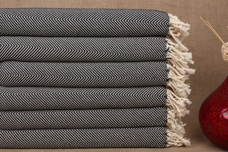Strandtuch mit Monogramm, türkische Baumwolle, Chevron, Schwarz, 40 x 71 Zoll